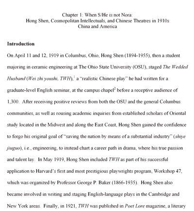 洪钤的捐赠也成为一个契机,激发俄亥俄州立大学在2014年发起“洪深研究”纪念活动。自俄亥俄州立大学首演之后,沉默近百年的英文剧《为之有室》再次由该校学生重排演出,还召开了“洪深和民国时期中国的现代媒体”研讨会,放映了洪深1936年导演的电影《新旧上海》。该校戏剧系博士何曼在《为之有室》中扮演女主人公,她2015年完成博士毕业论文《中国剧本创作:都市知识分子、跨国界舞台和现代戏剧(1910—1940)》,《为之有室》是重点探讨对象。英文期刊《中国现代文学与文化》2015年秋季特刊,刊发与洪深研究有关的6篇英文论文,其中就有以《为之有室》为对象的论文。这些例子说明了《为之有室》在中国现代戏剧早期发展中的“拓荒”价值,该剧也成为洪深剧作海外传播的重要范例。